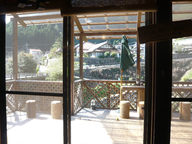 外はテラスのようになっていて、犬が遊んでいました。