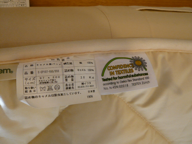 こちらがキャメル、、そうラクダの毛を使ったベッドパッドです。