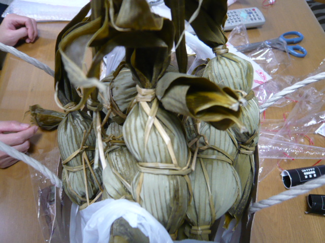 中には一つ一つ笹にくるまれた団子が、連なっていました!