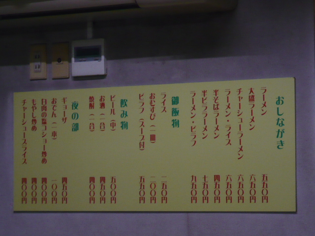 メニューはラーメン中心ですが、ぎょうざとチャーハンもあります。
