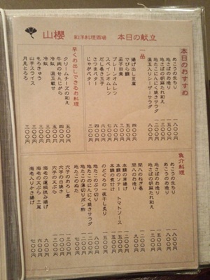 食の水先案内人 本日のおすすめをみてみると、、、あこう! 山櫻 2013/05/18 3:06 pm