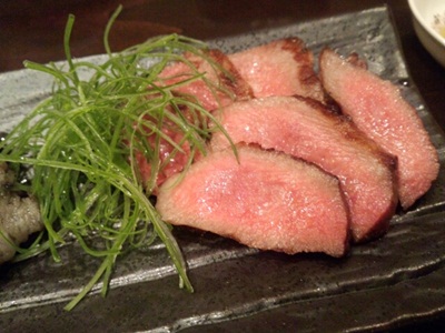 そして、、気になった和牛三種盛りをいただきました!すると、、タン、サーロイン?、コウネでした!まずは、、タンから。いや〜感動しますね〜!