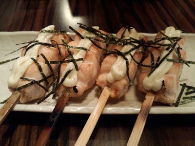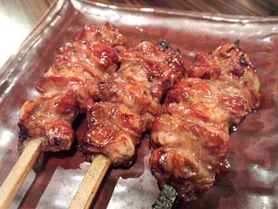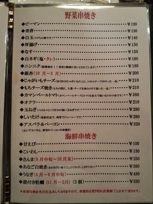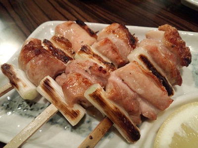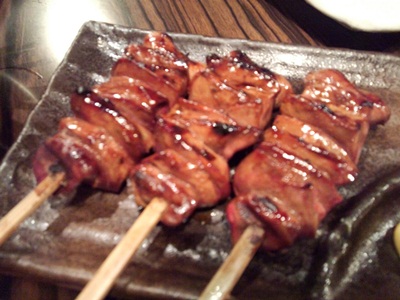 お値段の割りにボリューム満点で、そしておいしい!このお店、けっこうやりますな、、、と思いながらふとメニューをみると、、、なんとはつ元が!はつもとがありました!はつもとって心臓と肝臓だったかな、それのつなぎ目の部分って聞いたことあります。とっても貴重な場所なんですよね〜。それが一串130円!えーーー!普段なら250円とかしているような、、、、