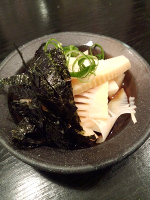 付きだしはこの日はたけのこ!中にはなんとお刺身も入っていました。これはうれしいです〜!