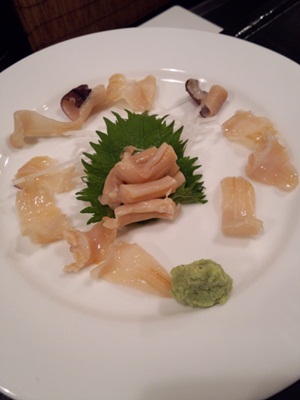 こちらがミル貝のお刺身!どどーんとこれで一人前!豪華です!いただくと、、、歯ごたえ抜群!とってもおいしいミル貝でした!