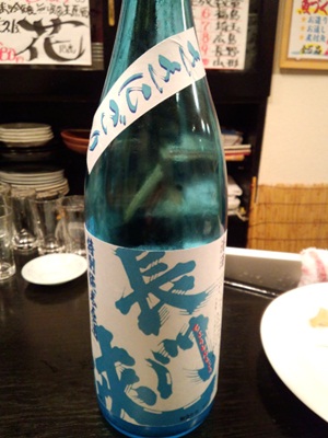 この日は初めていただいたお隣山口県の萩のお酒、長門峡です!萩のお酒は初めてですね〜。ブルーのボトルがなんとも涼しげでこの季節にぴったりですね!頂いてみましたが、萩、、、やりますね!おいしいお酒でした!思わずもう一杯!