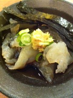 まずは付きだしのくらげの酢の物から!