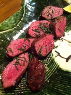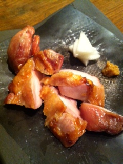 てんぷら盛りあわせもありました。そしてそしてお蕎麦の前に、こちらの合鴨焼きをいただきました。