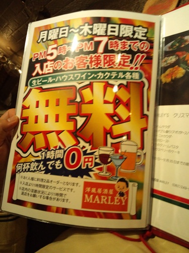 食の水先案内人 1時間何杯飲んでも無料!!! 洋風居酒屋 MARLEY 2012/11/22 3:14 pm