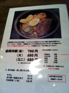 お店は結構広くって、メニューも岩手冷麺以外にもおいしそうなメニューがいろいろありました。が、ここはやはり岩手冷麺をチョイス!