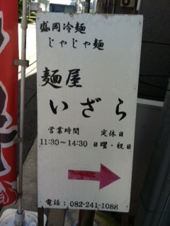 お店の名前は、いざらさん。パークサイドホテル広島のプリウスとプリウスαを購入したトヨタの販売店の目の前にあるので、ちょっと気になっていたんです。以前はよくコカコーラスタジアムの近くにあるいわてさんに行っていました。ですが、ここ2年近くは休業されているようですね。いざらさんも岩手冷麺のお店なので、行ってきました!