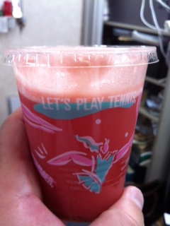 このフルーツの輝屋さんでは、フルーツの販売だけではなくお店の中でフルーツジュースに加工もしてくださいます。ちょうど立ち寄ったので、フロントスタッフのお土産としてお持ち帰りしてみました!