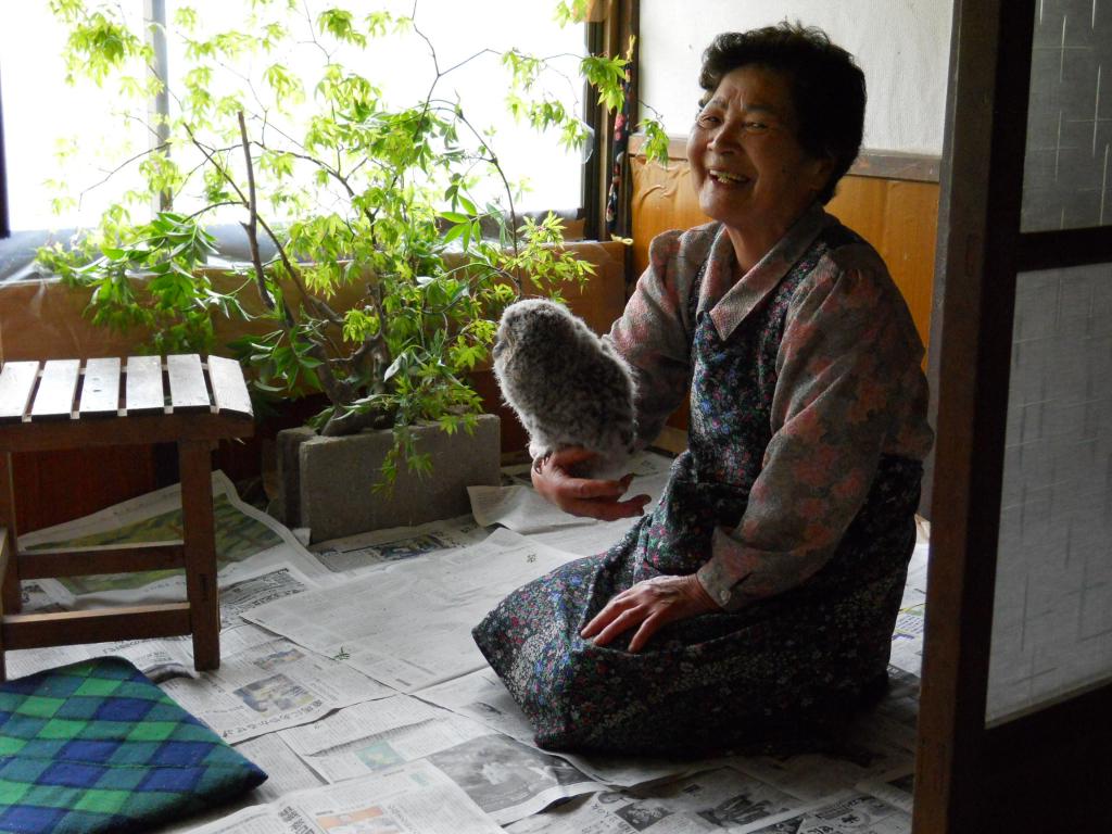 この神石高原町のとあるお宅に、毎年ふくろうの赤ちゃんが親ふくろうから