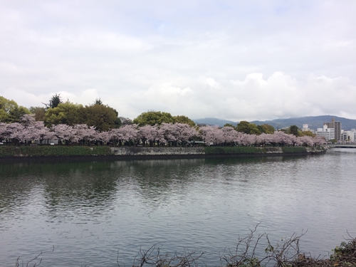 4月6日の今日の広島は朝から曇り空でしたが、お昼過ぎから小雨が降り始めました。そして風がつよくなってきましたね〜。ちょっと心配になって平和公園の桜を見に行ってきました!