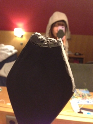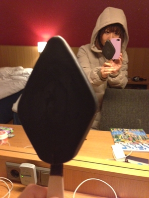 部屋の中が暑いのですが、フードを被って雰囲気を出してみました。