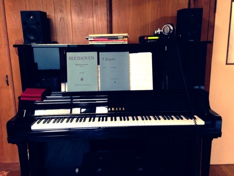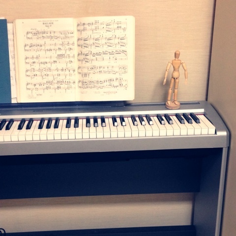 こちらは、電子ピアノ。。。激安だったので、以前アップライトが置けない賃貸に住んでいた時に購入しました。