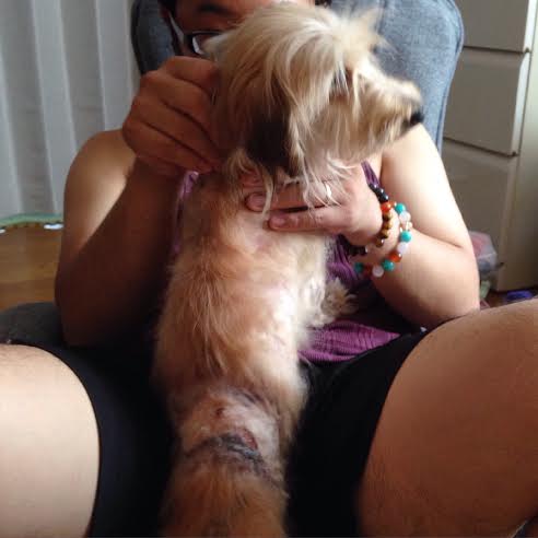 なぜか、背中の毛が全く無くて、、彷徨っている間に怪我でもしたのか、こんな状態。