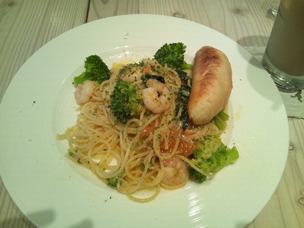 私は海老とブロッコリーのオイルパスタを頼みました。