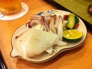 おいしそうなゲソのあぶりです。すだちと塩の