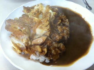 カツ丼とカレー、どちらの部分からいただこうかな?とカツ丼カレーの醍醐味に酔いしれながら