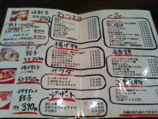 へ〜、なかなか広島でおいしい餃子屋さんが清ちゃん以外でみつからなかったのですが、いいお店を見つけたな〜と喜んでいると、メニューのなかに、、、、