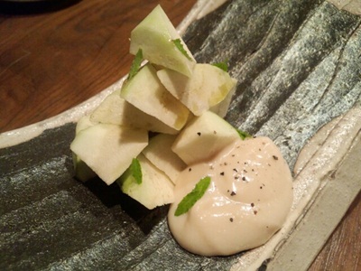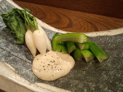 なるほど!そういうことだったんですか!一緒にエキストラヴァージンオイルもいただきました。二十日大根に熟成豆腐をつけていただいてみると、、、、きらーーーん!まず二十日大根ですが、、、なんにもつけなくてもまずおいしい!そして熟成豆腐、、、、うまい!しかもうがったような味付けじゃなく、普通においしい!これキューピーさんとかから発売されちゃうんじゃないかというくらい普段使いにいけそうな品のいいお味でした!熟成豆腐、、、、何につけてもおいしいと思います!