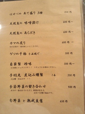 小料理はせべ 082-246-8602 広島市中区中町5-4 福田ビル 2F