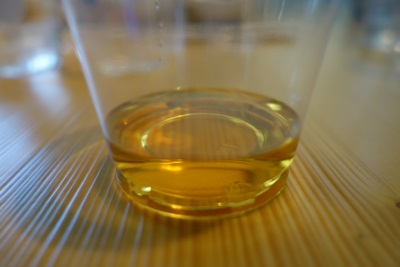 そしてお酒をきかせていただきました。本当のできたてほやほやの焼酎をまずは嗅いで見ると、、、、うわ!これ焼酎?と思ってしまうような香り!こげ臭さが少ししますね〜。