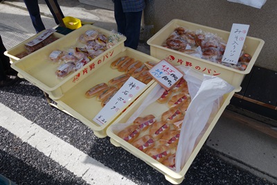 そんな中に私が特に求めていたのがこちら!いちごパンです。上下町にあります片野製パン所さんのいちごパン!こちらではでこ市と手創り市の4日間のみ製造されるんです。そうです!なんと年に4日しか営業されません。ある意味幻のパンですね。