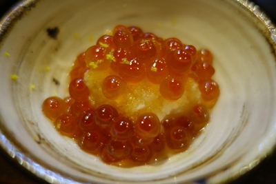 ここで焼酎をいただきながら、いくらおろしを〜!イクラが旬を迎えたんでしょうか?広島でも生いくらがちらほら見かけるようになりましたね〜!旬ってあるのかな?