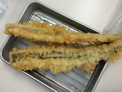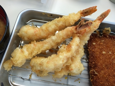 そこへ、、、あなご天定食のあなごが一本登場!まっ、大きいけどこんなもんかな〜と思っていると、、、あれれ?さらにもう一本!え?!二本も?!あなご天定食さん、、、すいません、、、二本くるなんて思ってもみませんでした!もう大満足!
