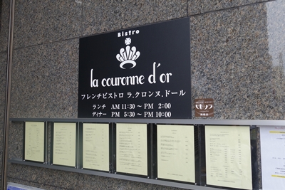 さて、先日はお昼の会食でこちらのお店に初めて訪れました。お店の名前はラ・クロンヌ・ドールさんです。お店に到着して1Fの看板を見て名前の読み方がわかりました。王冠という意味なんだそうですよ〜。