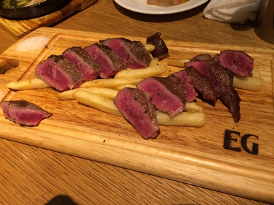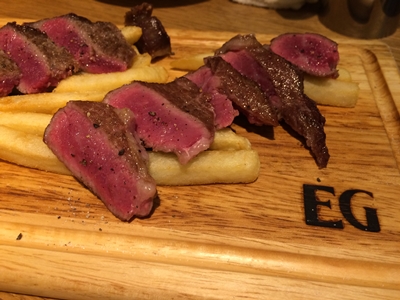 さて、先週のお話ですがずーっと気になっていたこちらのお店にお邪魔してきました〜!お店の名前は肉バルEGさんです。私が通っていた袋町小学校の正面にありました!耳にしたことはあったのですが、なかなか行く機会がなくこのたびようやく念願叶っての訪問となりました。いま流行の熟成肉のお店なんです!