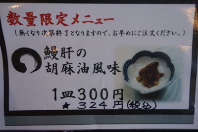 メニューを見て、ちょっと背伸びして一番人気のうな重の特上をお願いしました!鰻が大きいそうです!限定メニューの鰻肝のごま油風味もお願いしました。待っている間も店内にはおいしそうな鰻のいい香りが〜〜〜!