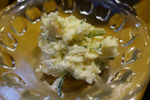 まだまだいただきますよ〜!ポテトサラダに鶏の照り焼きをいただきます!私はポテトサラダが大好物でさらにあけびさんの鶏の照り焼きにのせて一緒に食べるのが最高なんですよね〜!おいしい〜!