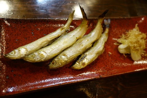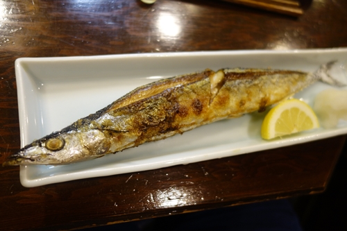 ここで焼き魚をいただくことに〜!この日はさんまとししゃもをお願いしました!まずはさんまから!ちょうどいい焼き加減がたまりませんね〜!おいしい〜!ししゃもはもちろん本ししゃもですよ〜!