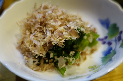 ほうれんそうをいただきます!このほうれんそうもおいしんですよね〜!お醤油をちょっとかけていただきます。体にいいものばかりなので少々飲みすぎても大丈夫かな〜って安心しちゃいますよね〜!