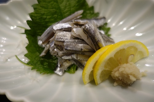 キムチをつまみながらこの時旬だったコイワシを!刺身とフリットでお願いしました!コイワシ本当においしいですね〜!あっさりいただけるのがいいです!フリットもおいしい〜!
