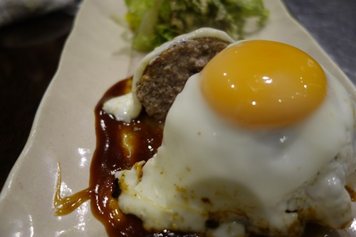 ハンバーグをお願いしました!半熟の目玉焼きを割っていただくと、、くぅ〜!おいしすぎる〜!やばいです〜!上質のミンチを使っていますからね〜!